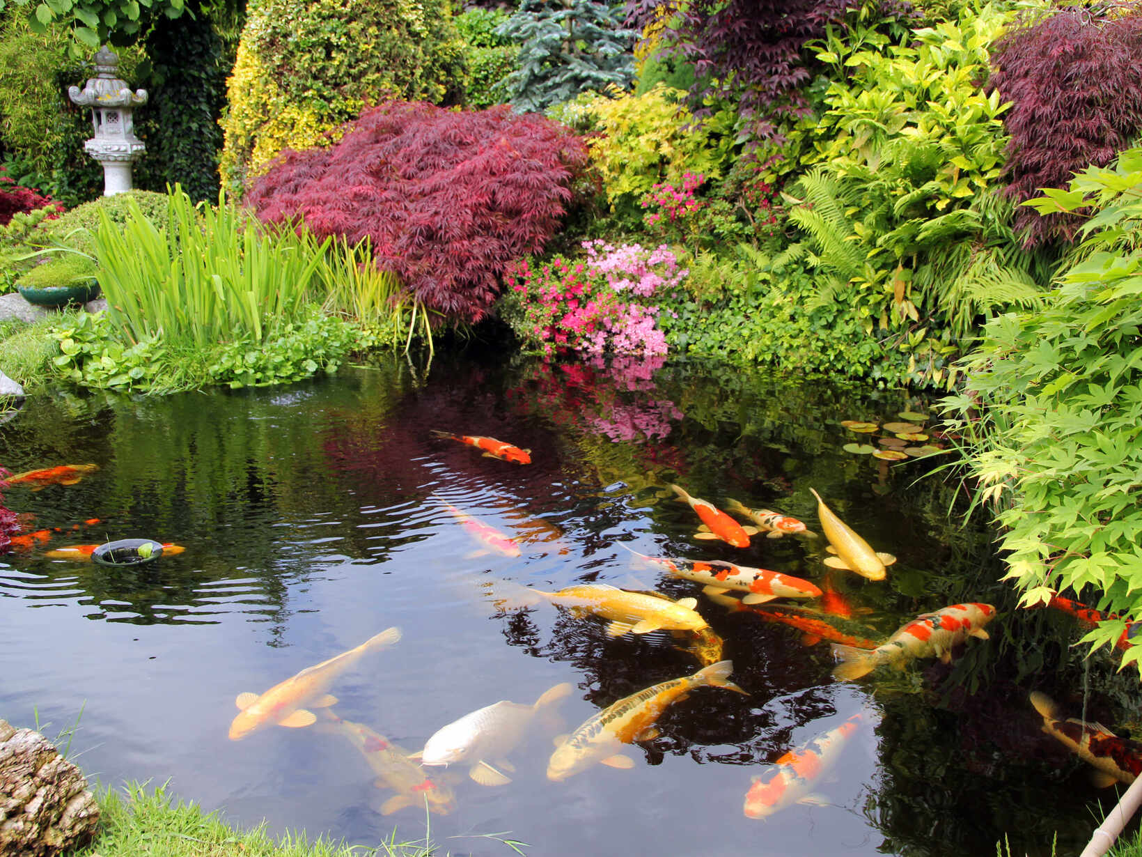 Seerosen geben ebenso ein malerisches Bild ab. Bei klassischen Japangärten wird jedoch darauf geachtet, dass ein Grossteil der Wasseroberfläche frei ist, damit sich der Himmel und die Umgebung darin spiegeln kann. Auch die Fauna kommt im Wassergarten nicht zu kurz. Ist der Teich tief genug, können Sie darin Koi-Karpfen eine neue Heimat geben.
